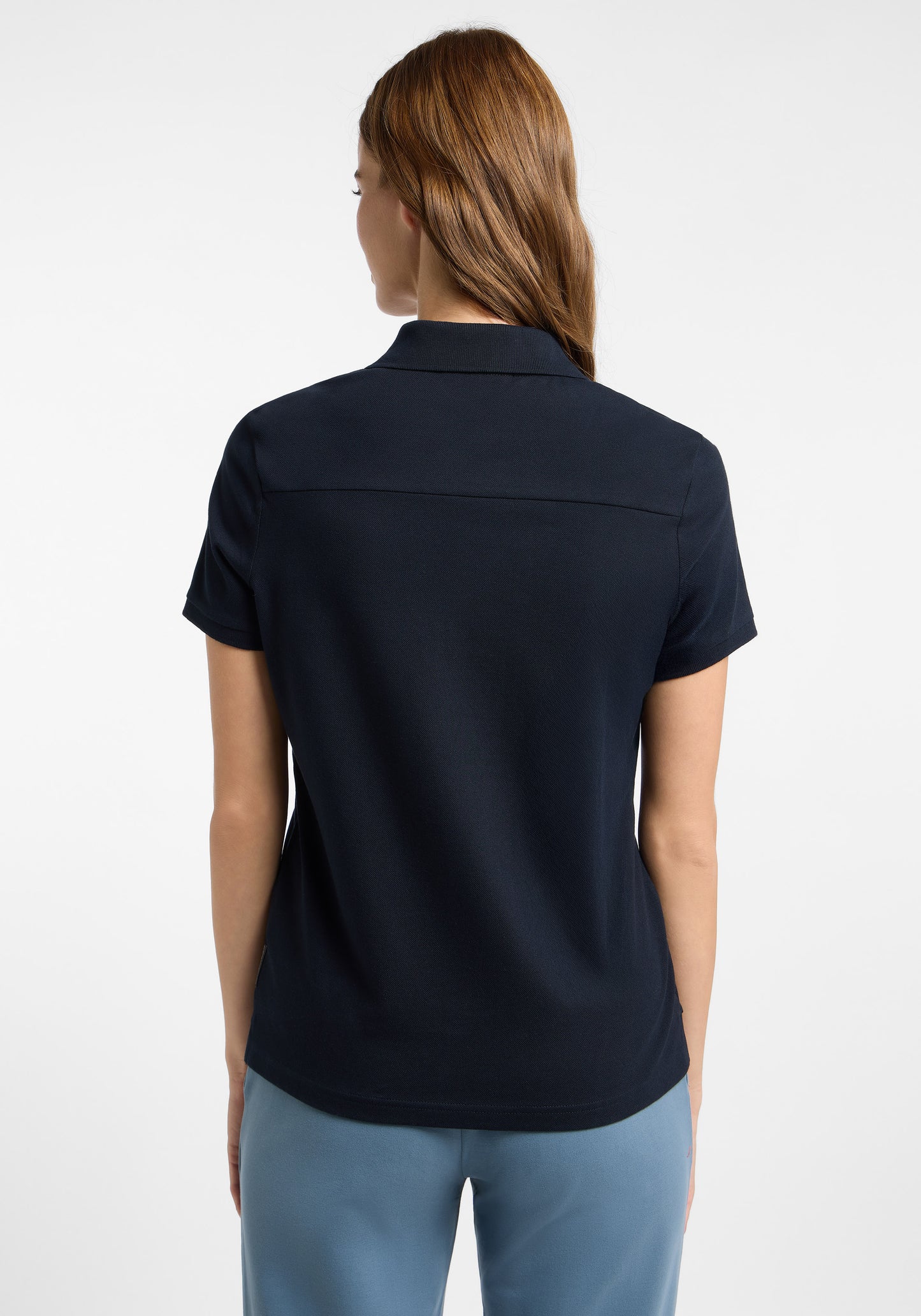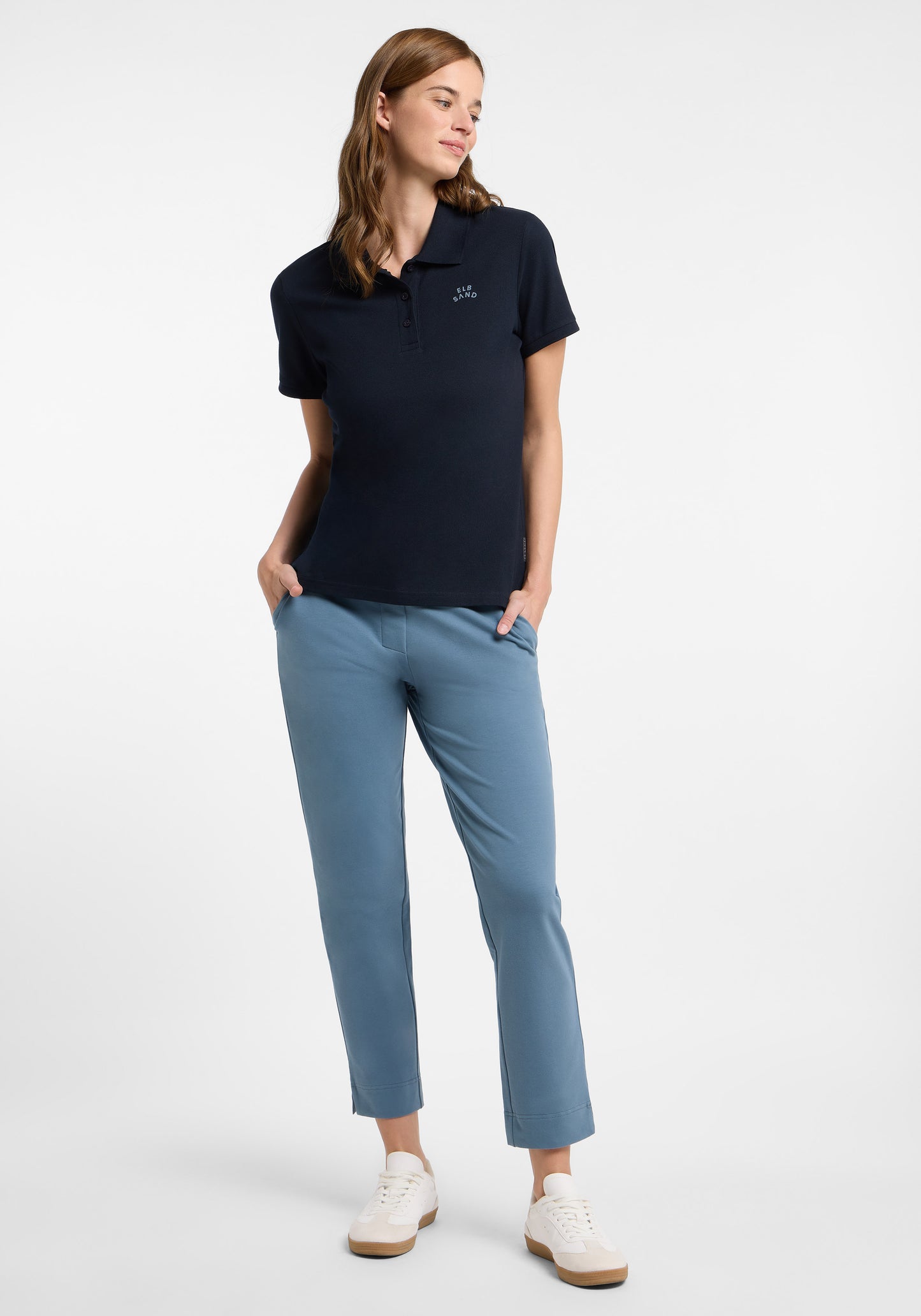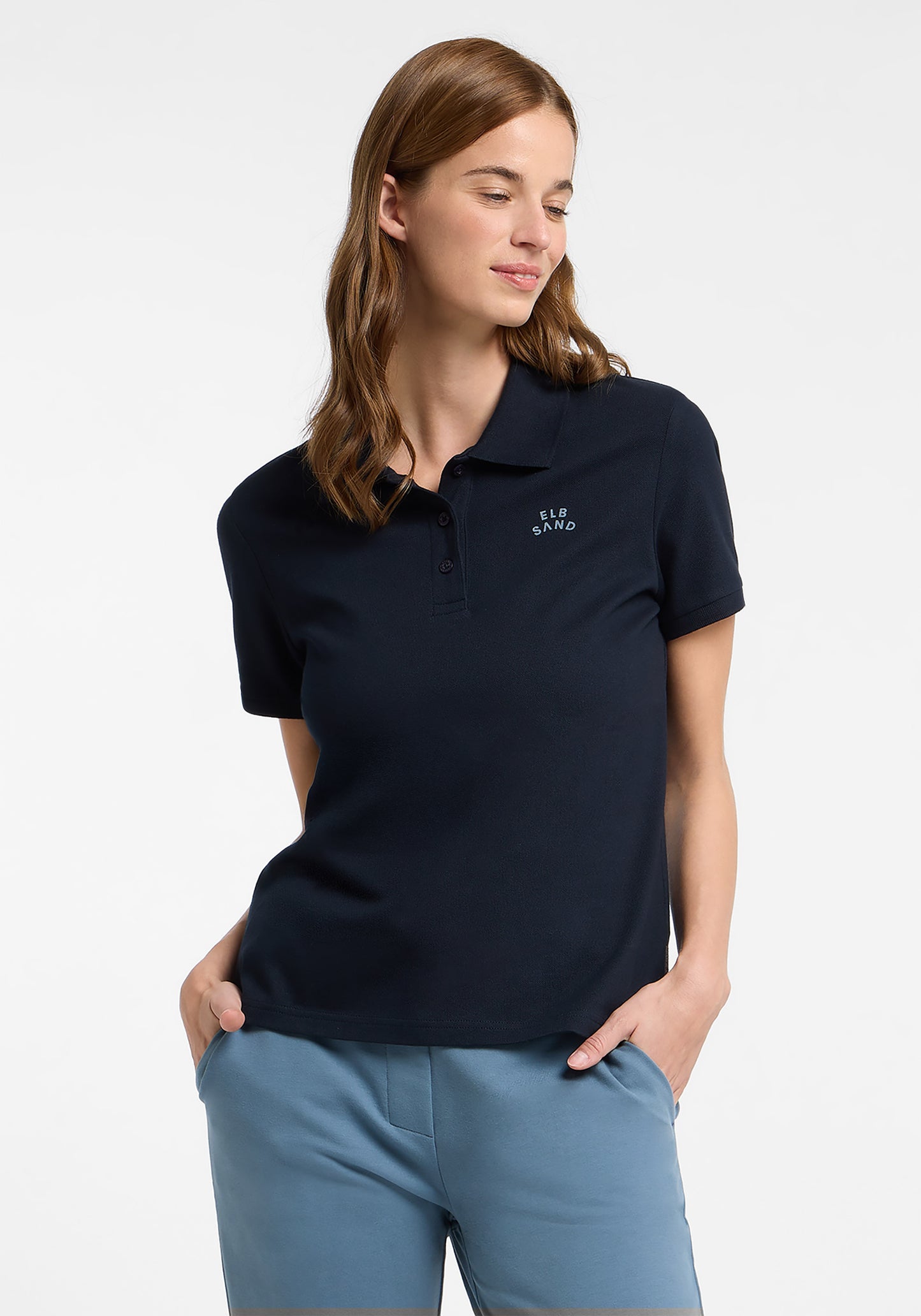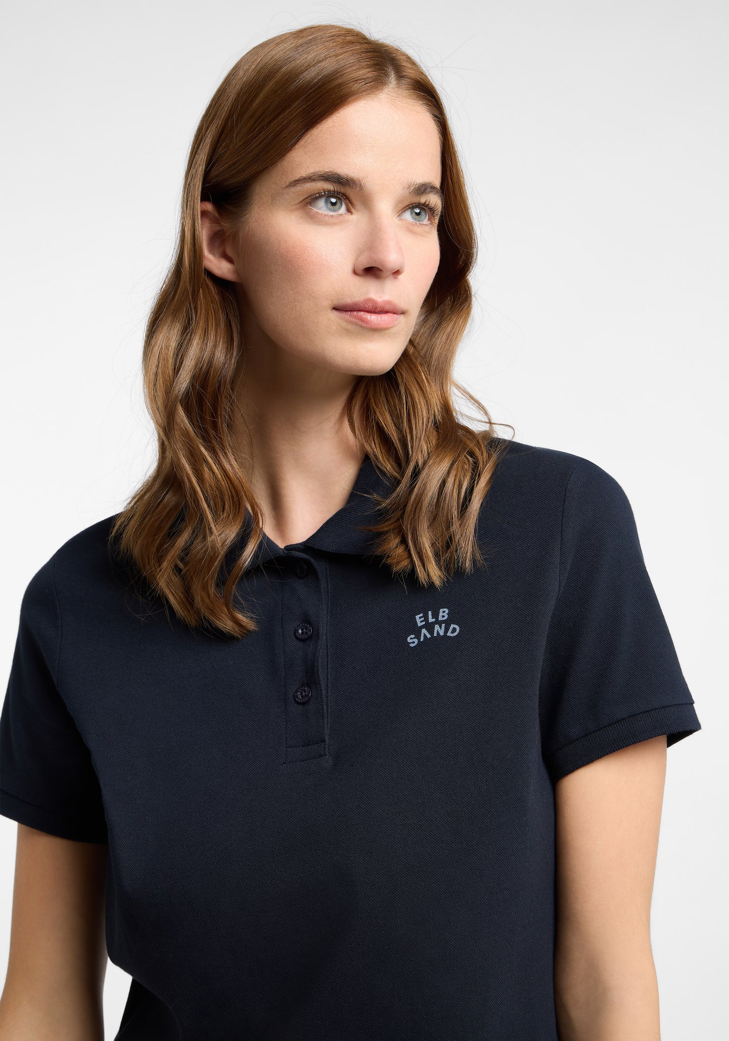 Our Elbsand Stina Polo Shirt is a stylish basic polo shirt for women in a regular fit with soft piqué fabric. It features a classic collar with a button placket, slim ribbed cuffs on the sleeves, and small side slits for enhanced freedom of movement. A soft, semi-transparent print on the left chest adds a subtle accent. The polo is made of 96% cotton and 4% elastane, offering a comfortable fit with a natural look. Ideal for pairing with jeans, shorts, or chinos, it is the perfect go-to piece for warm days, combining timeless style with comfort.