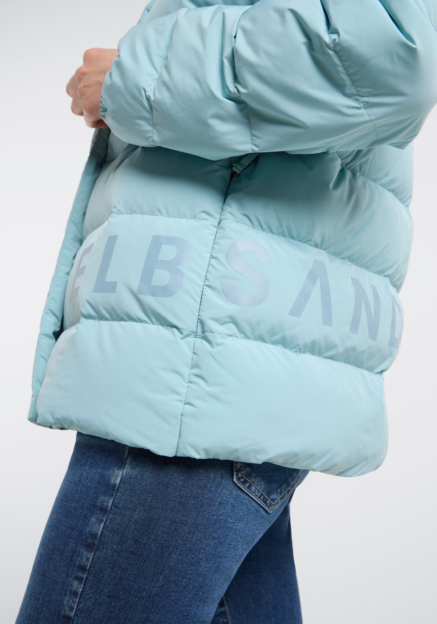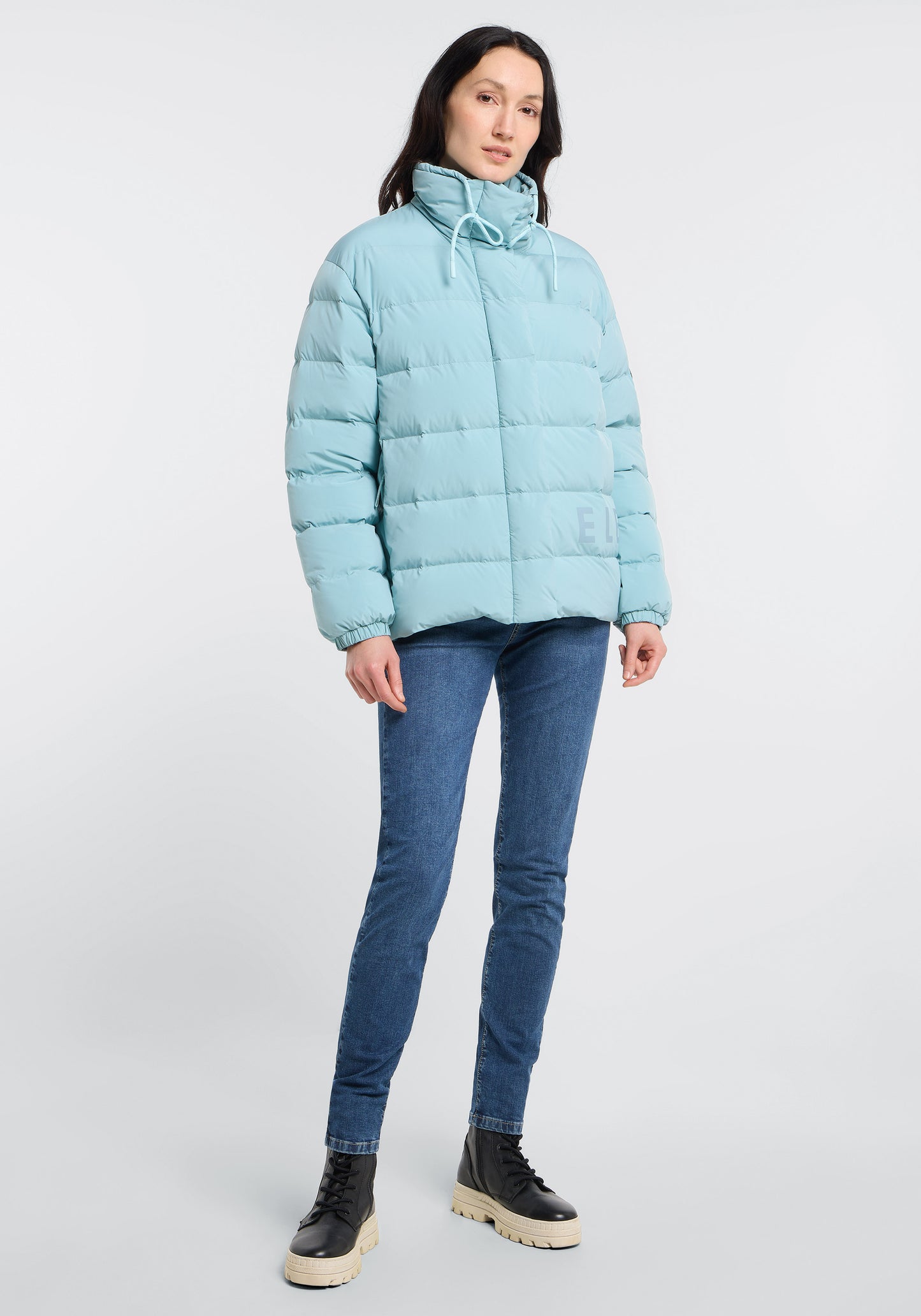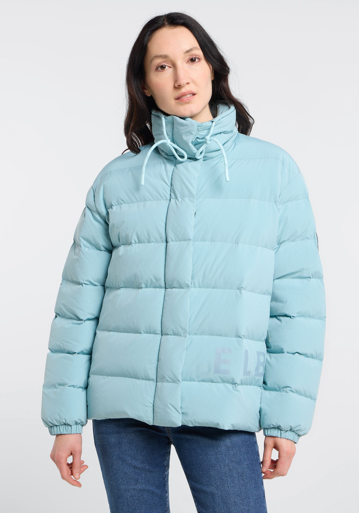 The Elbsand Varna Outdoor Jacket is a loosely fitted women's jacket that combines comfort with style. It is made from matte fabric with a pleasantly soft touch and lined with innovative SORONA AURA FEATHERLESS INSULATION, providing warmth with low weight. The adjustable collar with a drawstring protects against wind, while zippered hand pockets offer practical storage options. A large logo print in flock print on the front and back adds sporty accents. The jacket is water-repellent, breathable, and keeps you warm even on cool, damp days. It is ideal for transitional seasons and pairs well with both jeans and sporty clothing.