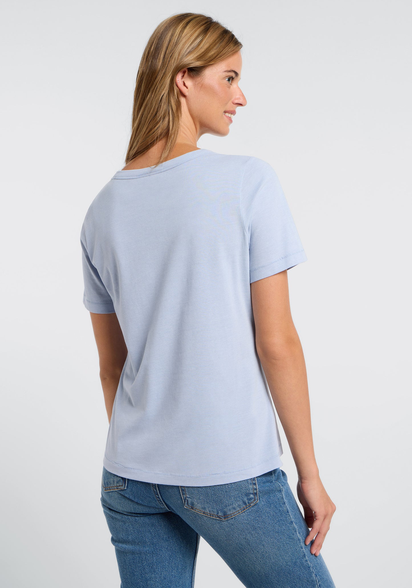 The classic crew neck makes the T-shirt easy to style and highlights its timeless look. As a subtle detail, soft embroidery decorates the front, reminiscent of handcrafted work and giving Liara an individual touch that sets it apart from simple basics.