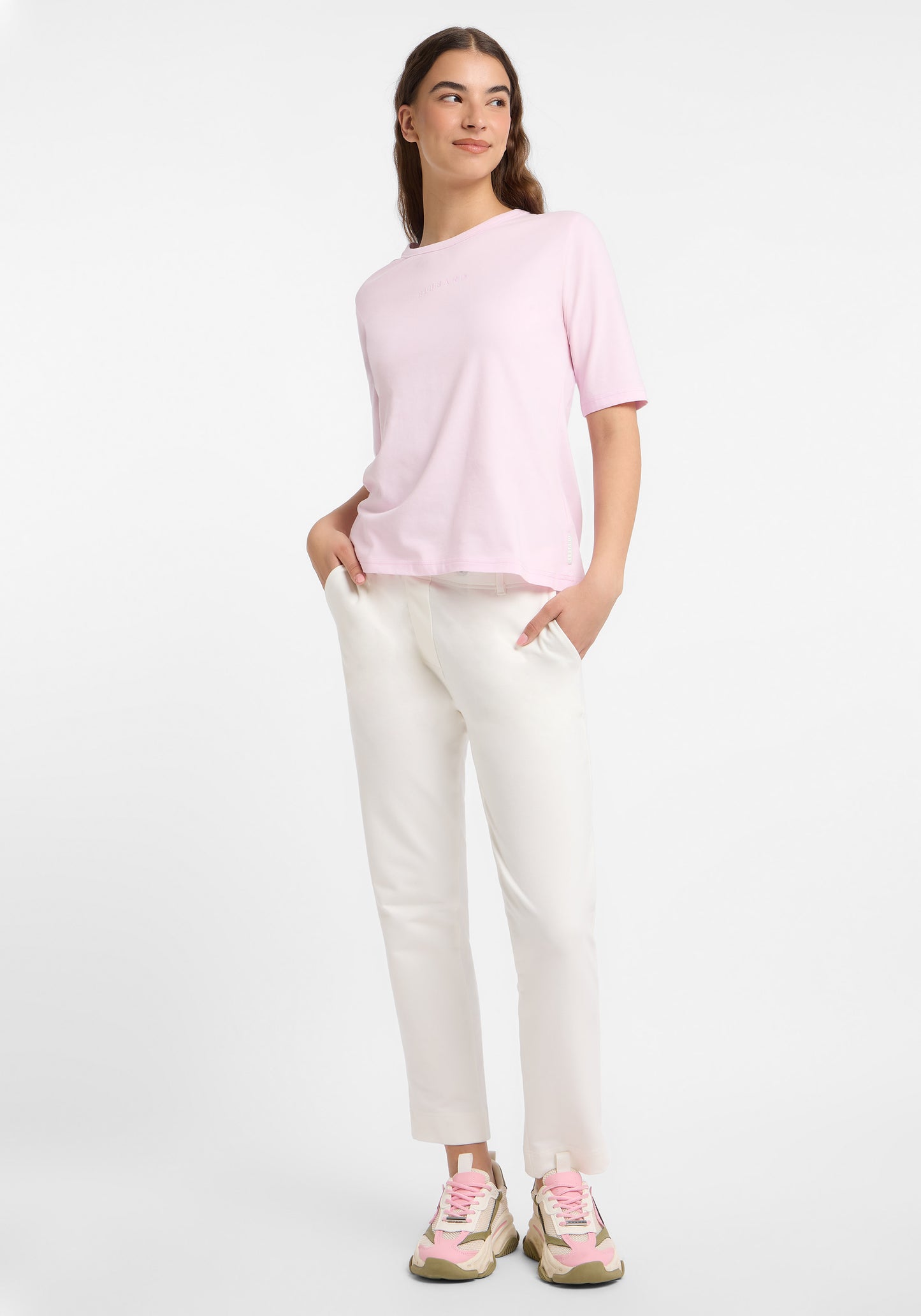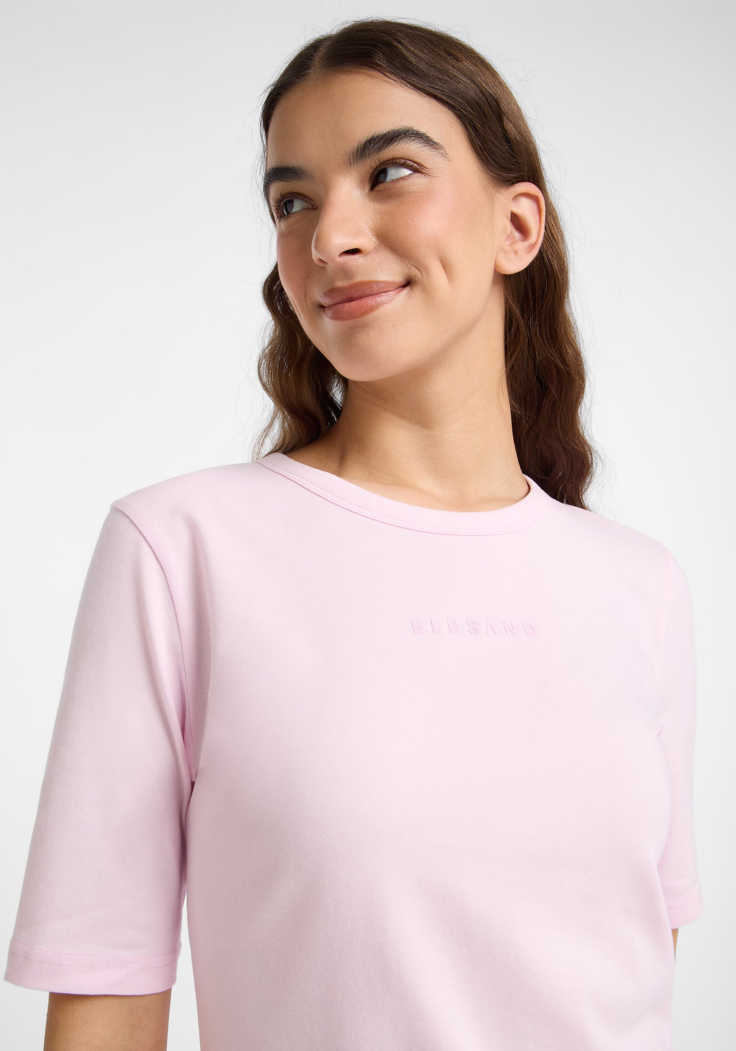 The Elbsand Siva T-Shirt is a slim-cut, stylish basic t-shirt for women. It is made from soft, stretchy single jersey fabric with 95% cotton and 5% elastane, providing comfortable wear and a perfect fit. The t-shirt features a classic crew neckline and short sleeves, making it versatile for year-round wear. A subtle, soft rubber print on the chest adds a discreet accent. The Siva T-Shirt combines minimalist style with high-quality craftsmanship and is ideal for women who appreciate comfort and fashionable design.