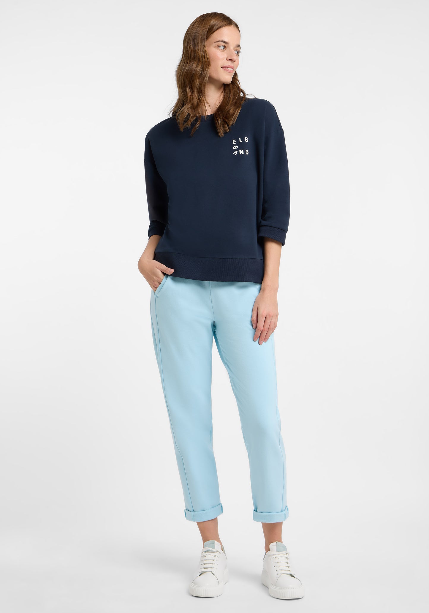 Our Elbsand Parvin Sweatshirt is a loosely cut loose-fit sweatshirt made from soft, stretchy sweat fabric with a cozy brushed inner side. It features a round neckline with ribbed cuffs, slightly dropped shoulders, and 3/4-length sleeves with ribbed cuffs. A small, color-contrasting rubber print on the chest adds a subtle accent. This sweatshirt is ideal for transitional seasons, offering a casual, comfortable silhouette for relaxed days. Perfect for walks, coffee with friends, or cozy moments at home. Composition: 95% cotton, 5% elastane.