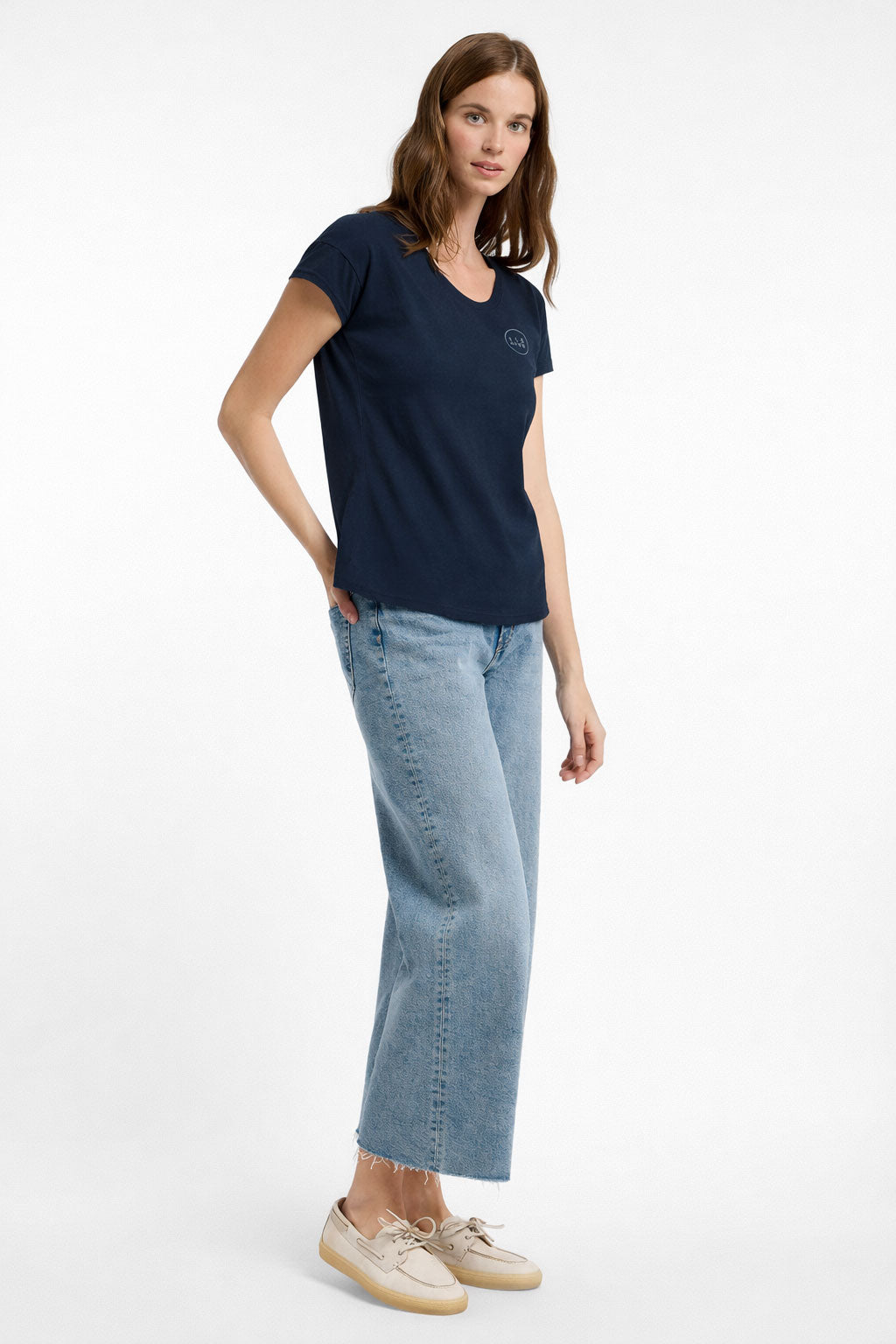 The Elbsand Ragne T-Shirt features a regular fit cut made from lightweight single jersey fabric with a soft touch. It impresses with a classic round neckline and raw-edge hems for a casual, urban look. A soft flock print on the chest and at the nape adds subtle accents. The composition of 50% cotton and 50% polyester ensures comfortable wear. This sporty T-shirt is versatile and ideal for everyday wear, relaxed hours at the beach, or city trips. Care instructions: Machine wash at 30 degrees, gentle cycle, do not tumble dry.