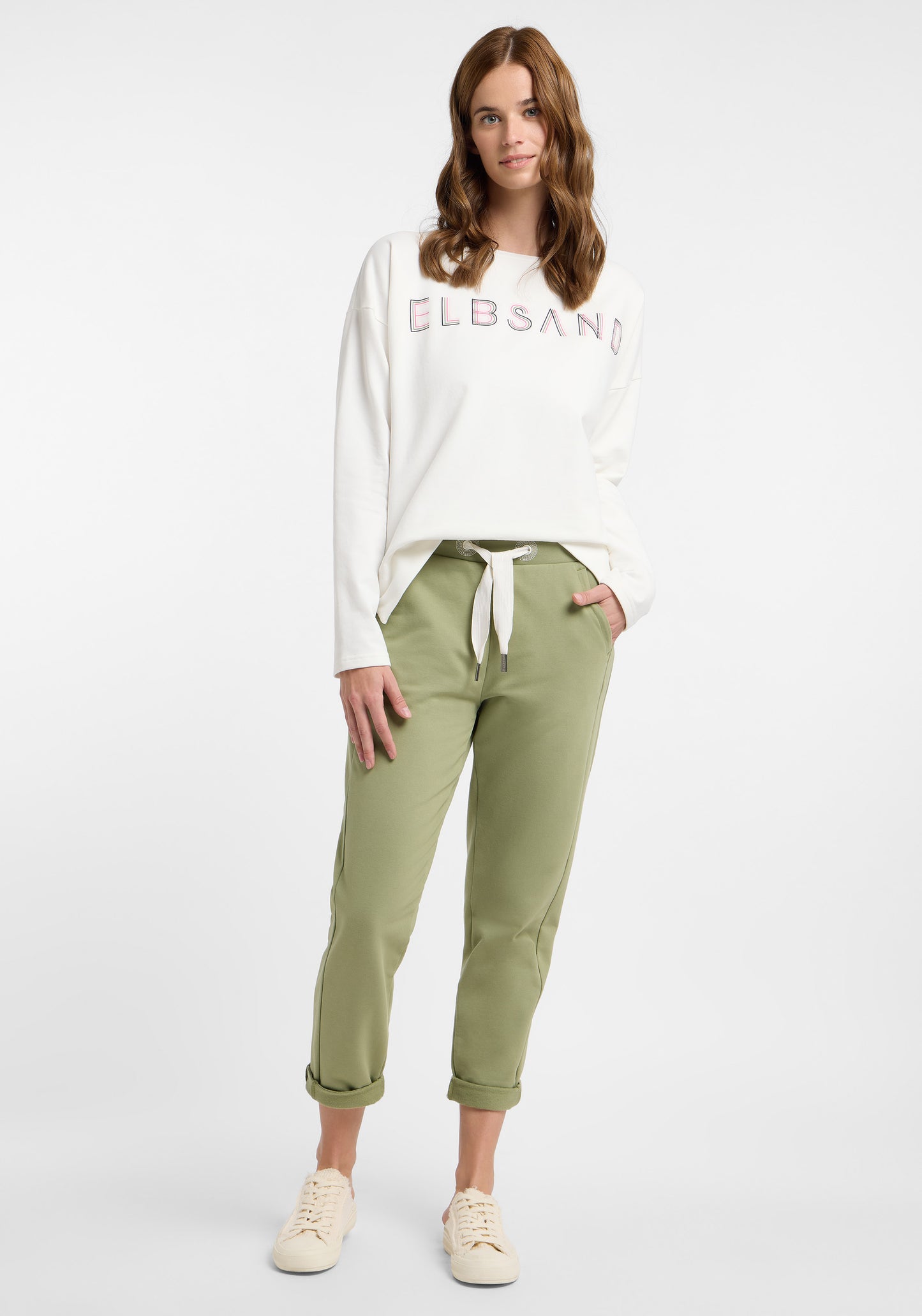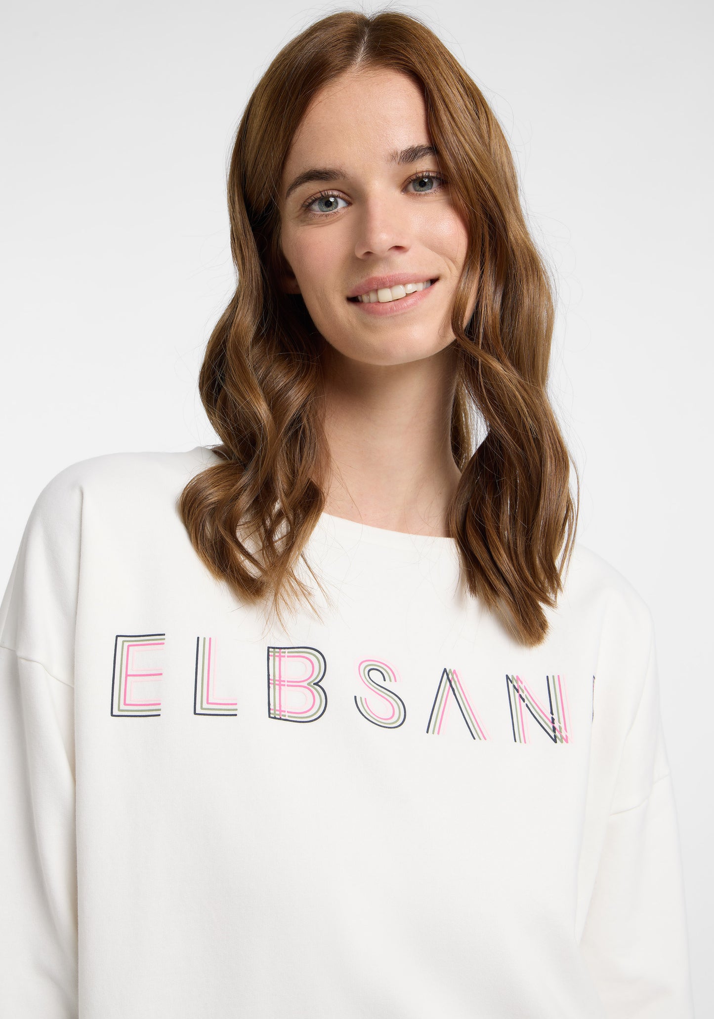 Our Elbsand Aliska Sweatshirt offers the perfect blend of comfort and style. This loose-fit sweatshirt is made from soft, stretchy sweatshirt fabric with a cozy brushed and napped interior for a comfortable feel. It features a wide neckline, slightly dropped shoulders, and a wide hem with side slits, giving it a modern and relaxed look. The soft multicolor rubber print on the front adds a sporty-feminine accent. Ideal for everyday wear, walks, or cozy weekends. Composition: 95% cotton, 5% elastane. Care instructions: Machine wash at 30 degrees on a gentle cycle, not suitable for tumble drying.