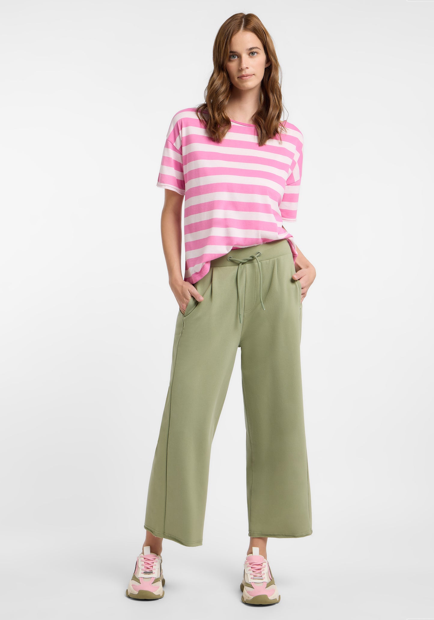 Our Elbsand Neah 7/8 sweatpants offer a stylish and comfortable fit with a wide-leg loose design. Made from soft, stretchy sweatshirt fabric, they provide high comfort for everyday wear. The pants feature small waistband pleats, side pockets, and an open rolled hem edge. A subtle rubber print on the right back pocket completes the look. Perfect for relaxed days, city strolls, or cozy hours at home. Crafted from 95% cotton and 5% elastane with a 7/8 length. Machine washable at 30°C on a gentle cycle. Not suitable for tumble drying.